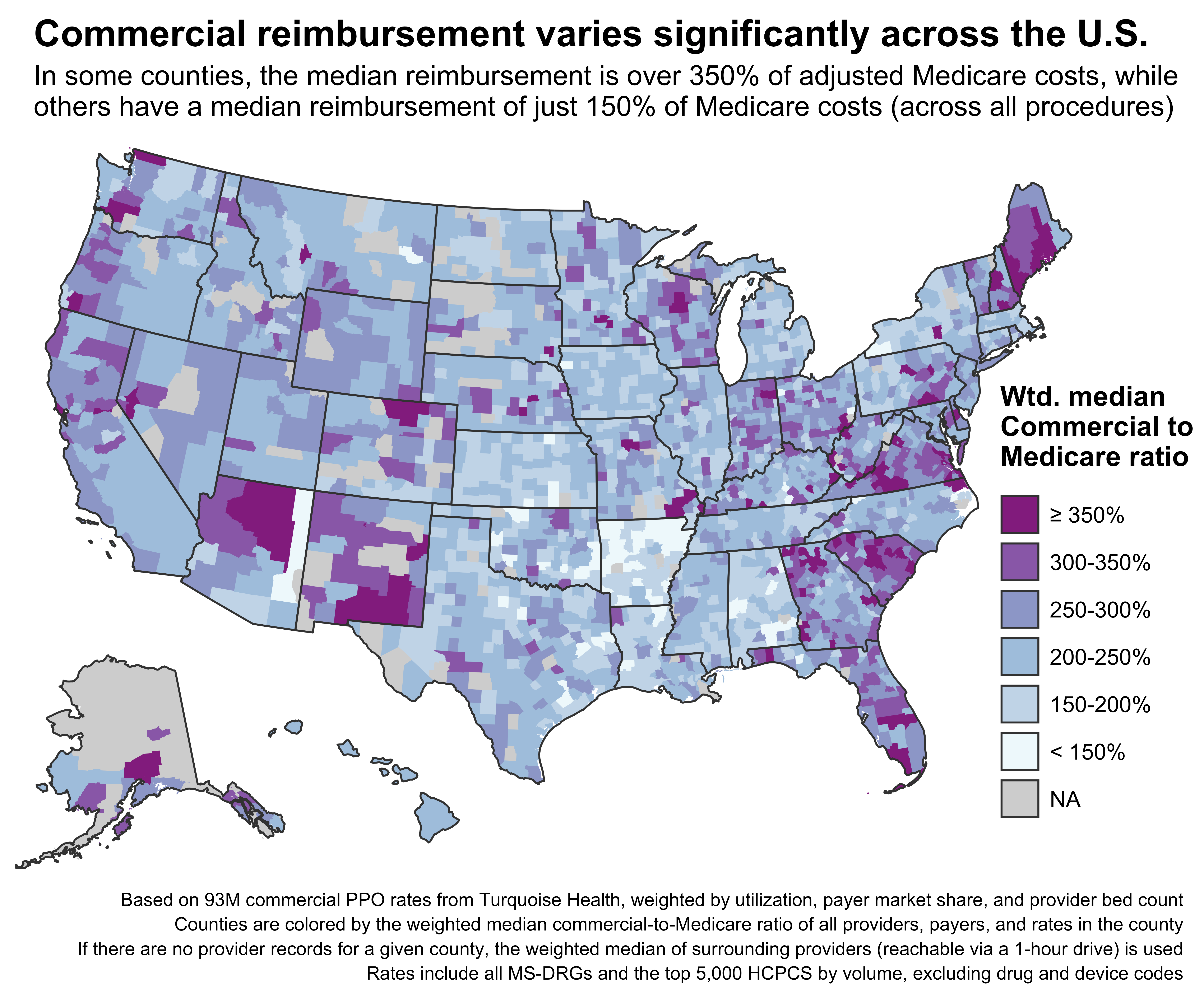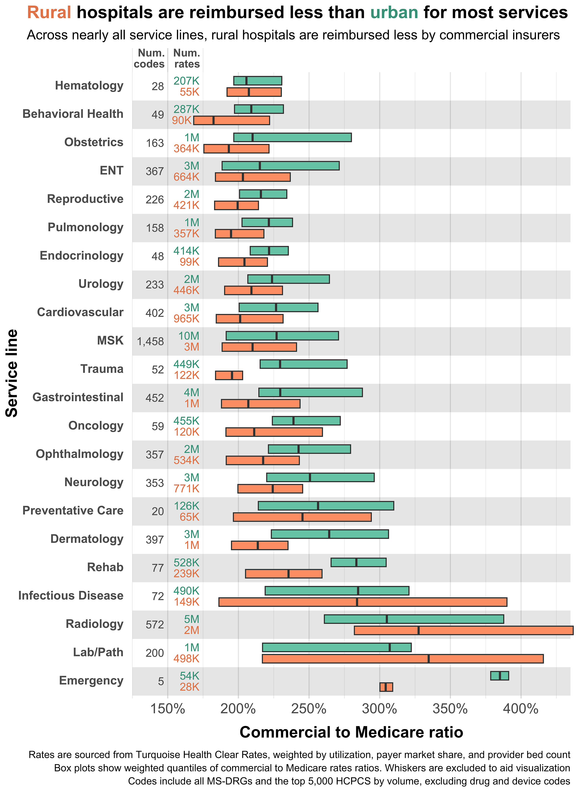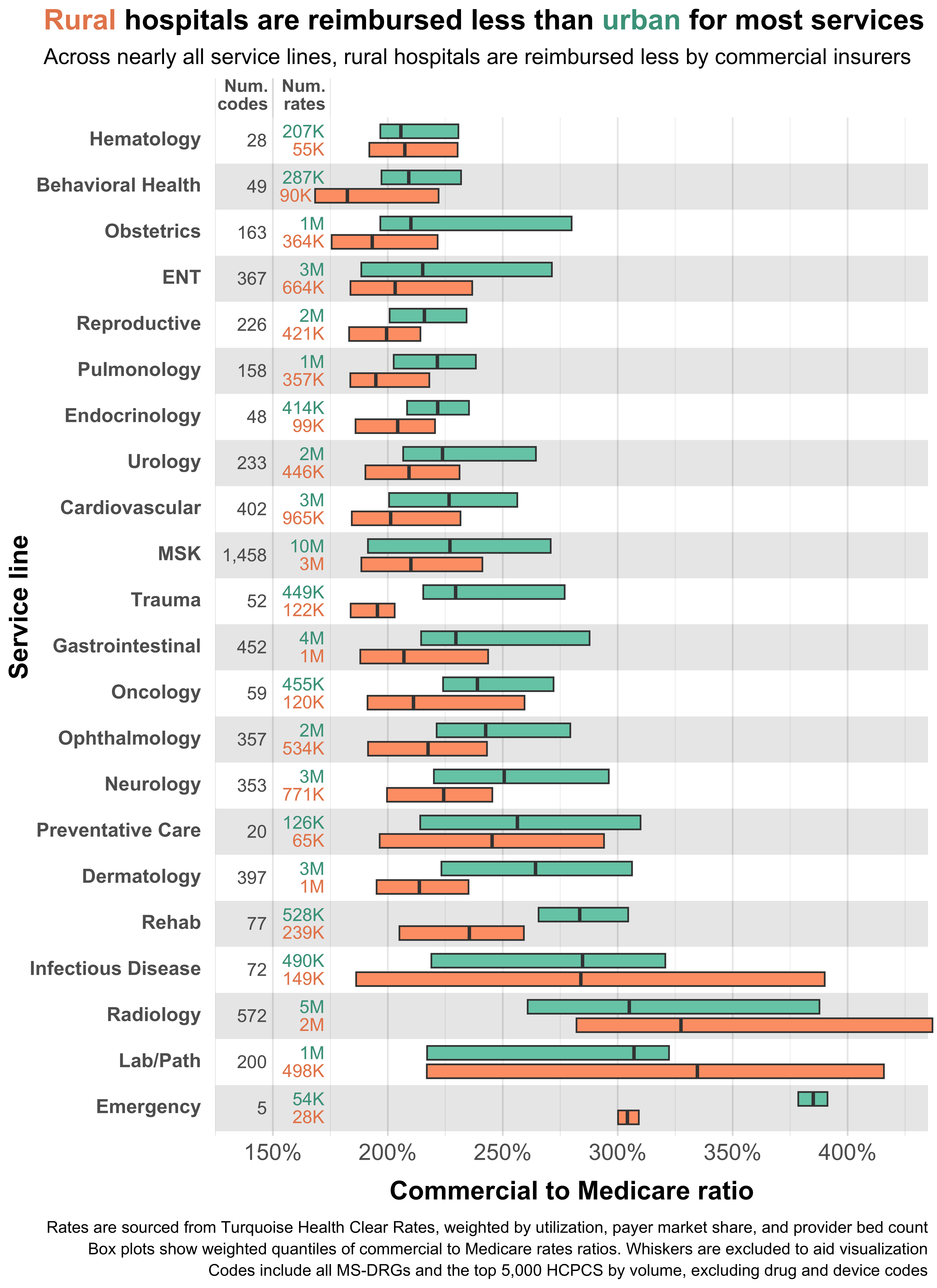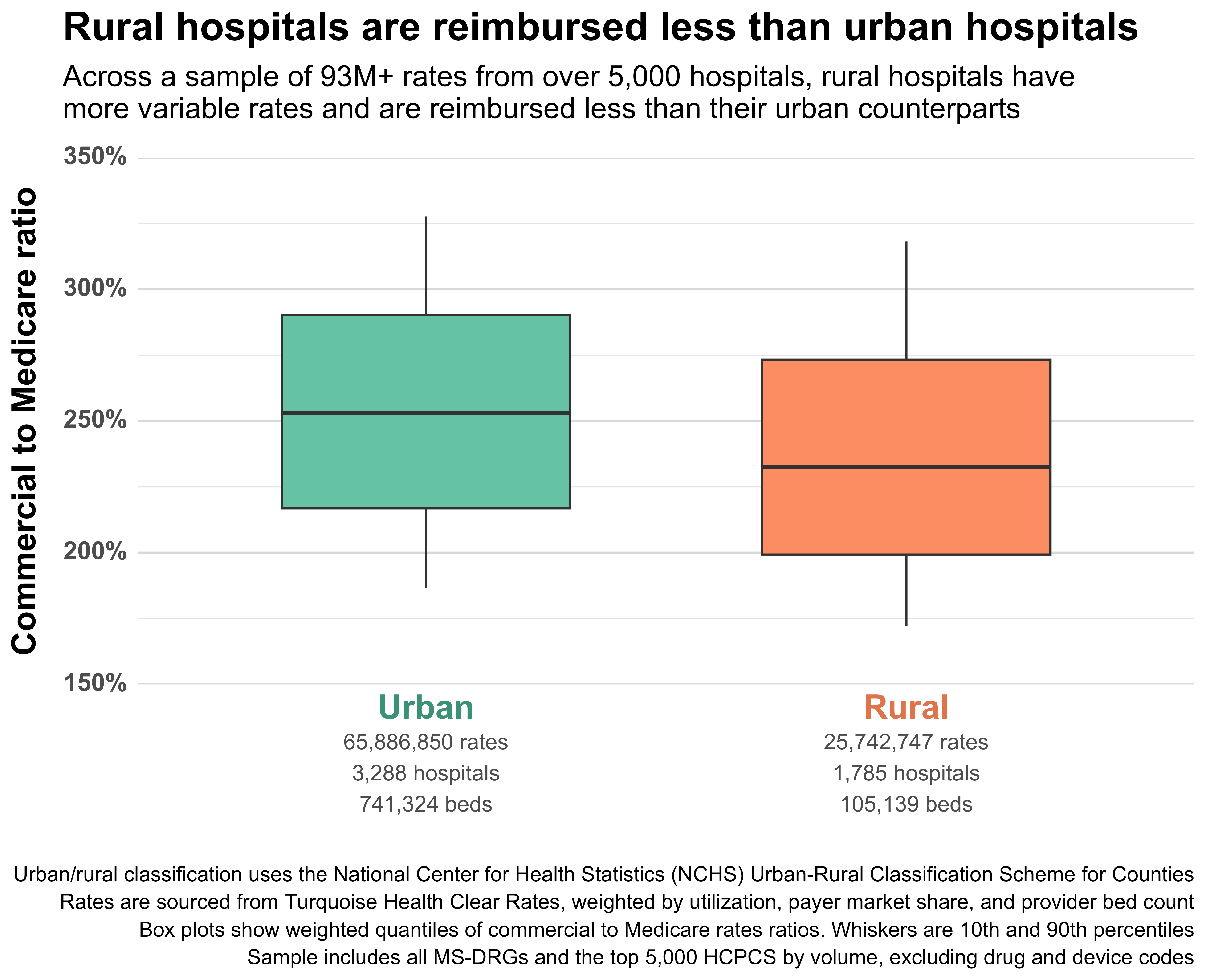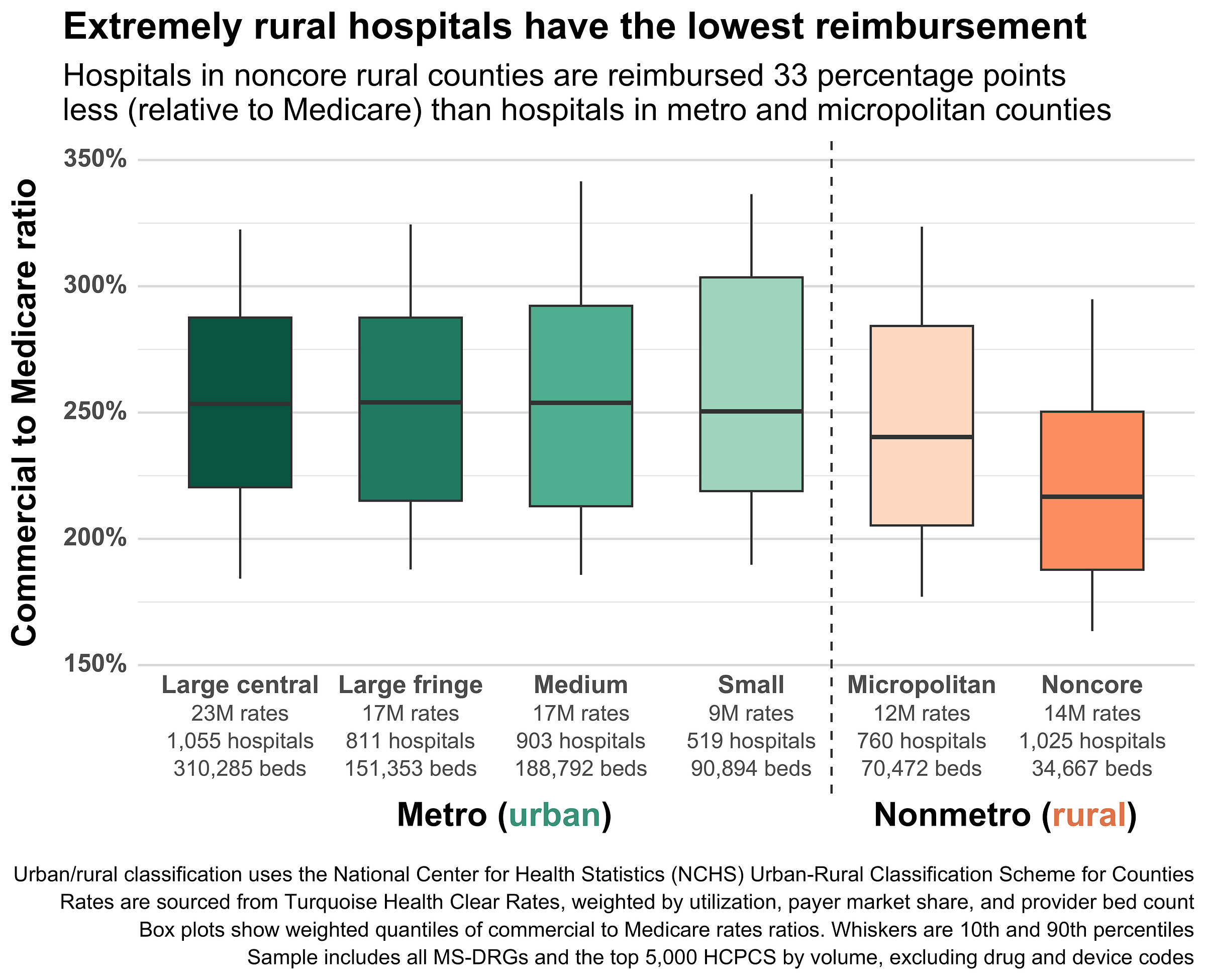 An unprecedented look at the urban-rural reimbursement gap using 93M+ negotiated commercial rates